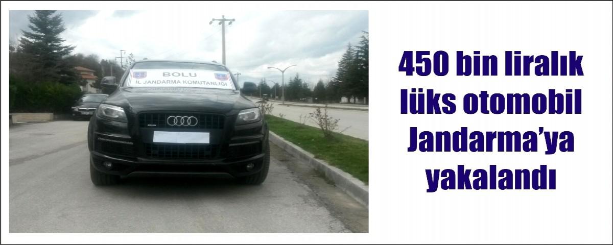 Bolu İl Jandarma Komutanlığı’nca Dörtdivan ilçesi sınırları içerisinde icra edilen yol kontrol ve arama faaliyetlerinde piyasa değeri 450 bin lira olan lüks otomobile el konuldu.