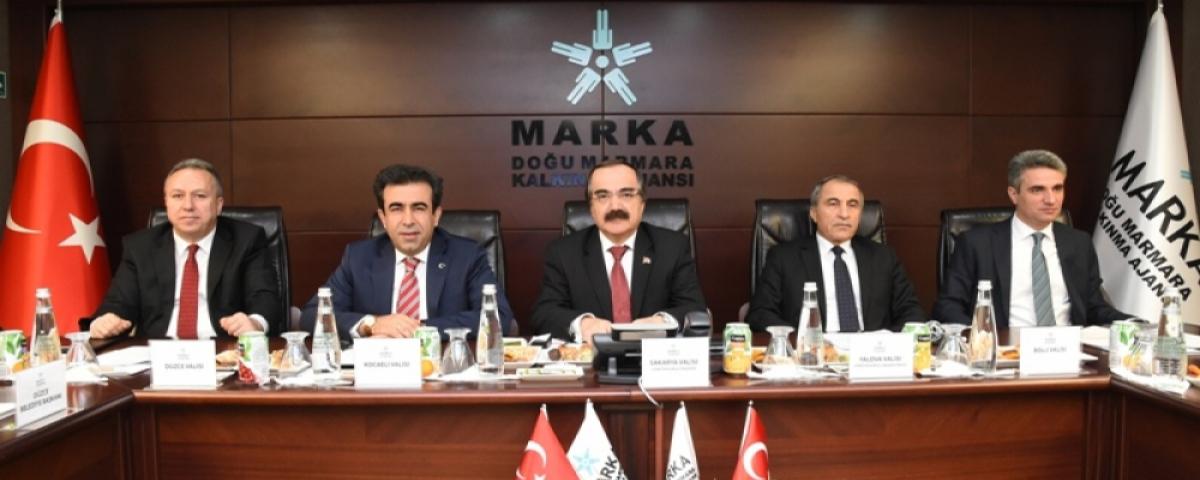 Kocaeli MARKA Merkez binası toplantı salonunda yapılan toplantıya, Doğu Marmara Kalkınma Ajansı Yönetim Kurulu Başkanı ve Sakarya Valisi Hüseyin Avni Coş, Bolu Valisi Aydın Baruş, Kocaeli Valisi Hasan Basri Güzeloğlu, Düzce Valisi Ali Fidan, Yalova Valisi Selim Cebiroğlu, Bolu Belediye Başkanı Alaaddin Yılmaz, Düzce Belediye Başkanı Mehmet Keleş, Bolu İl Genel Meclisi Başkanı Yaşar Yüceer, Düzce İl Genel Meclisi Başkanı Şinasi Akbulut, Yalova İl Genel Meclisi Başkanı Yaşar Demirel, Bolu Ticaret ve Sanayi Odası Başkanı Türker Ateş, Düzce Ticaret ve Sanayi Odası Başkanı Fahri Çakır, Yalova Ticaret ve Sanayi Odası Başkanı Tahsin Becan, Kalkınma Kurulu Başkanı Fatma Lebibe Özçağlar ve Doğu Marmara Kalkınma Ajansı Genel Sekreteri Mustafa Ayhan katıldı.