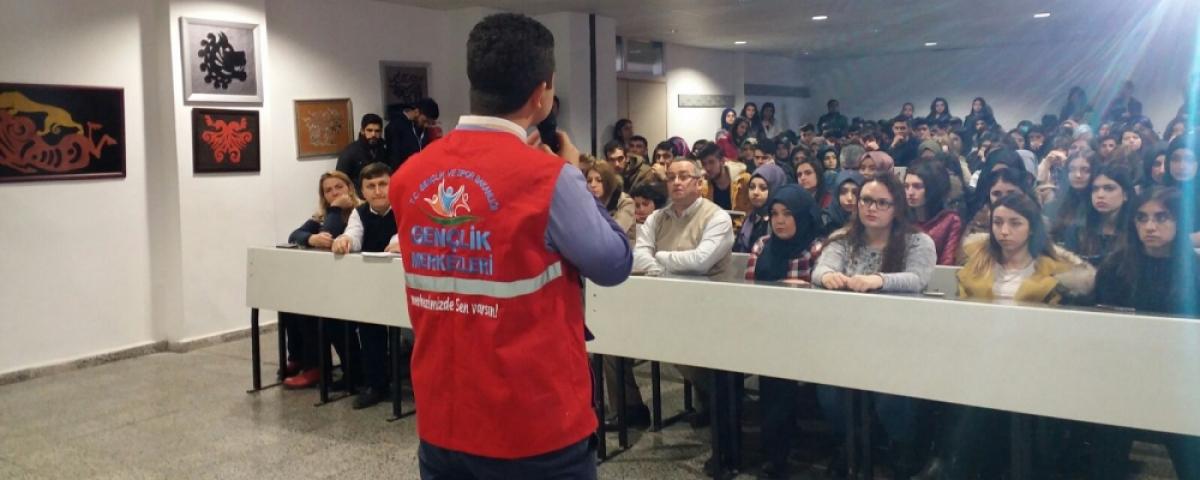 15 Mart 2016 Salı günü gerçekleştirilen toplantı Bolu Gençlik Hizmetleri ve Spor İl Müdürlüğü Gerede Gençlik Merkezi’nce gerçekleştirildi. AİBÜ Gerede Meslek Yüksek Okulu’nda okuyan gençlere yönelik gerçekleştirilen bilgilendirme toplantısı ile gençlik merkezi faaliyetleri ile Gençlik ve Spor Bakanlığı’nın projeleri hakkında öğrenciler bilgilendirildi. Gerede Meslek Yüksek Okulu’nda gerçekleştirilen toplantıya Bolu Gençlik Hizmetleri ve Spor İl Müdürlüğü Gençlik Merkezi Müdür V. Muzaffer Akdoğan, Gerede Gençlik Hizmetleri ve Spor İlçe Müdürü Mustafa Kocakaya, Gerede Meslek Yüksekokulu Müdürü Nurettin Akçakale, müdür yardımcıları Mesut Aköğretmen, Ayhan Milli, Yüksekokul Sekreteri Seyit Oral ve çok sayıda akademisyen ile öğrenci katıldı.