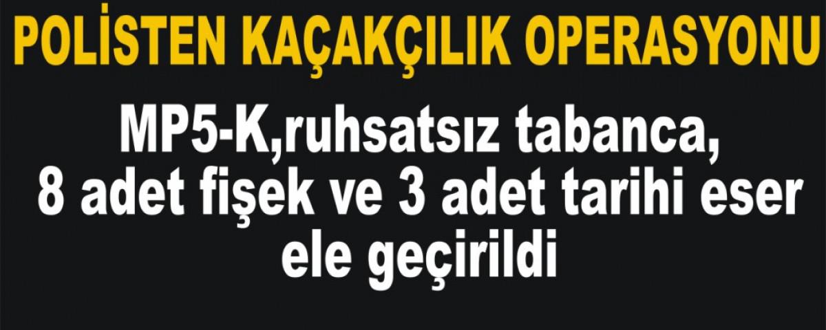 Bolu Valiliğinden yapılan yazılı açıklamada, Bolu İl Emniyet Müdürlüğü Asayiş Şube Müdürlüğü Cinayet Büro Amirliği ekipleri tarafından İ.E. isimli şahsın evinde ruhsatsız silah ticareti yaptığı ihbarı üzerine baskın düzenlendi. Evde geniş çaplı yapılan aramada, bir adet MP5-K, bir adet ruhsatsız tabanca, 8 adet fişek ve 3 adet tarihi eser ele geçirildi. İ.E. ifadesi alınmak üzere gözaltına alındı.İHA
