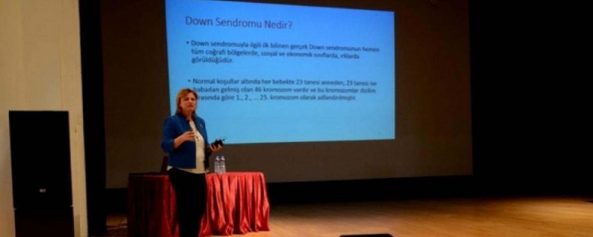 Konferansı veren Anadolu Üniversitesi Engelliler Entegre Yüksekokulu Müdürü Prof. Dr. Emine Sema Batu, down sendromunun hiçbir ırka, sosyoekonomik gruba ve bölgeye özgü bir yetersizlik olmadığını ifade ederek, bu durumun genetik düzensizliklerden dolayı ortaya çıktığını söyledi. Down sendromlu bebeklerin sağlık durumları hakkında bilgi veren Batu, “Bu bebeklerin kas gerginliğinin düşük olduğunu biliyoruz. Ailelere, ‘Hayatınıza down sendromlu bir birey katıldıysa…’ diyorum, mutlaka bir fizyoterapist de size katılmalı. Bebekken nasıl oturması gerektiğinden büyüdüğünde hangi spora yönlendirilmesi gerektiğine kadar mutlaka size tavsiyelerde bulunmalı. Fizyoterapistle, kasları güçlendirici programlar izlenmeli.” diye konuştu.