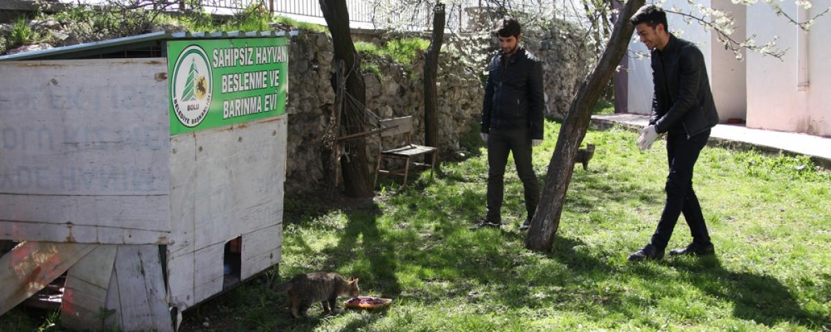 Bolu Belediyesi tarafından yaklaşık üç (3) yıl önce hayata geçirilen bir proje kapsamında şehrin birçok noktasına yerleştirilen Kedi Evleri ve Sahipsiz Hayvan Barınma Evlerinin, Abant İzzet Baysal Üniversitesi İlahiyat Fakültesi Din Kültürü Öğretmenliği Bölümü öğrencileri tarafından bakımları ve temizlikleri yapılıyor. Gençler, ‘Topluma Hizmet Uygulamaları’ dersi kapsamında gerçekleştirdikleri bu örnek uygulama kapsamında evlerin temizlik ve bakımları dışında hayvanlar için yiyecek de bırakıyorlar.