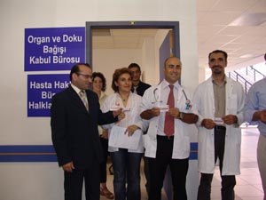 Organ bağışı konusunda bir çok vatandaşımızın yanlış bilgilere sahip olduğunu dile getiren Başhekim Prof. Dr. Mehmet Soy, ?Organ bağışlayan vatandaşlarımıza baktığımızda çoğunun eğitim seviyesinin yüksek olduğunu görüyoruz. Yani ülkemizde eğitim seviyesiyle organ bağışı arasında güçlü bir bağ bulunuyor. Eğitim seviyesi yüksek olan insanlar organ bağışı konusuna daha sıcak bakıyorlar. Fakat vatandaşlarımızın çoğunda organ bağışının dinen sakıncalı olduğuna dair bir yargı var. Bunun aşılması gerekiyor. Bu konuda Bolu Müftülüğü?nün organ bağışının caiz olduğuna dair yaptığı bir açıklama var. Umuyorum bu konuya vatandaşlarımız daha duyarlı olur ve hasta yatağında bekleyen binlerce insanımız yarınlarına umutla bakar. Biz hastane olarak organ bağışının artması için elimizden gelen tüm çalışmaları yapacağız? şeklinde konuştu