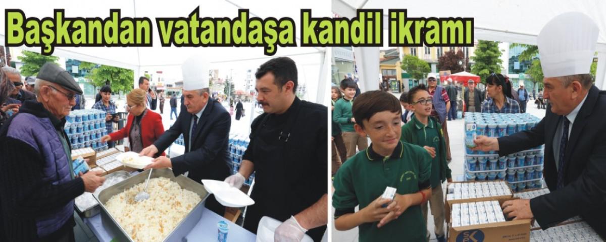 Bolu Belediyesi, Miraç Kandili nedeniyle vatandaşlara etli pilav, ayran ikramında bulundu, ilköğretim öğrencilerine ise süt dağıtıldı. Belediye meydanında öğle saatlerinde yapılan ikrama halk büyük ilgi gösterirken, yemek tezgâhının başına geçen Bolu Belediye Başkanı Alaaddin Yılmaz, aşçı kepi takarak halka etli pilav ikramında bulundu. Yemek ikramı ile vatandaşın kandilini kutlayan Başkan Yılmaz’a, Belediye Başkan Yardımcısı Emine Davarcıoğlu da eşlik ederken, Kültür ve Sosyal İşler Müdürlüğüne bağlı imarethanede pişirilen etli pilav ise kısa sürede tükendi.