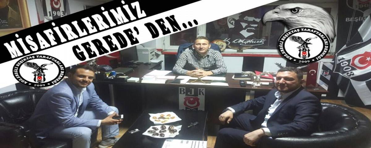 Dernek Başkanı Tarkan Adik tarfından karşılanan Bolulu misafirlere, Karadeniz Ereğli Beşiktaş Taraftarları Derneği’nin kuruluşu, oluşumu ve gelişimi hakkında bilgi verilerek, yapılan faaliyetler hakkında kendilerine fikir olması anlamında paylaşımlarda bulunuldu. Geredeli heyet bu fikir ve paylaşımlardan çok memnun kaldıklarını dile getirerek her daim Karadeniz Ereğli Derneği’nin yanında olacaklarını dile getirdi. Türkiye’deki en başarılı taraftar derneği seçilen Karadeniz Ereğli Derneği de Geredeli Beşiktaşlı taraftarlara dernekçilik hayatlarında başarı dileklerinde bulunarak her daim yanlarında olduklarını dile getirdi.