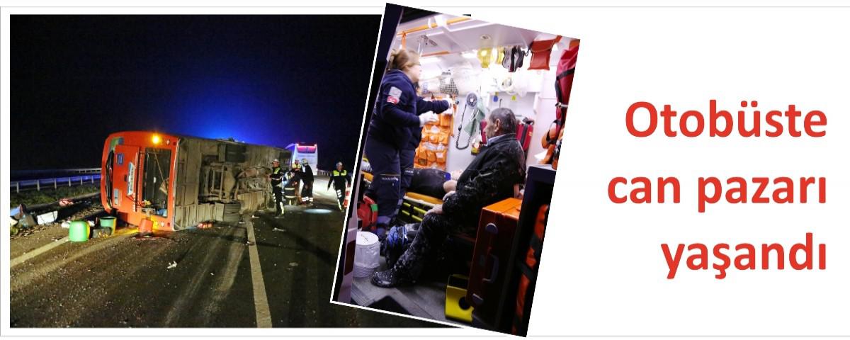 Alınan bilgiye göre, Musa Alkaya idaresindeki 34 LA 2811 plakalı otobüs, TEM otoyolunun geçtiği Yeniçağa ilçesi yakınlarında önünde seyreden Kasım Kılıç'ın kullandığı 27 HS 497 plakalı boya yüklü tıra arkadan çarparak, devrildi.