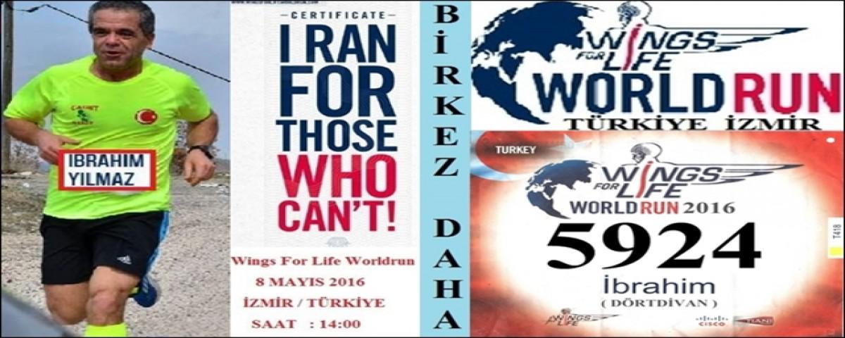 İbrahim Yılmaz, Ekim ayında sol ayak tarak kemiklerinin kırık olması sebebiyle uzun bir süredir yarışlara katılamıyordu. Bolulu sporcu koşamayanlar için, İzmir’de adım atarak yeniden pistlere “merhaba” dedi. 8 Mayıs Pazar saat 14.00’te İzmir’de gerçekleşen yarışta koşan İbrahim Yılmaz yarışma hakkında şunları söyledi; "Yarış parkurumuz teknik düzenlemeler ve öneriler üzerine Gündoğdu Meydanı – Sahil Yolu – Karşıyaka – Kuş Cenneti – Menemen güzergahı olarak değiştirildi. Başta Karşıyaka sahili, Sasalı Doğal Yaşam Parkı ve Kuş Cenneti gibi İzmir’in güzel alanlarının içinden geçen parkurumuz sıfıra yakın yükselti farkı ile katılımcılarımıza çok özel bir koşu deneyimi sunmuş oldu. Yakalama Aracı’na yakalanarak yarışı tamamlayan katılımcılarımız kendilerine sunulan servis imkanları ile tekrar başlangıç alanına geri döndüler. Wings for Life World Run koşusunun başlangıç alanı ise Gündoğdu Meydanı idi. 7 Mayıs Cumartesi sabahından yarış bitimine kadar yarış ve sponsor alanları halkımıza ve katılımcılarımıza açıktı. Yarışın startı bu alanda kurulacak olan start tagının altından 8 Mayıs Pazar günü Türkiye saati ile 14:00’te verildi" dedi.