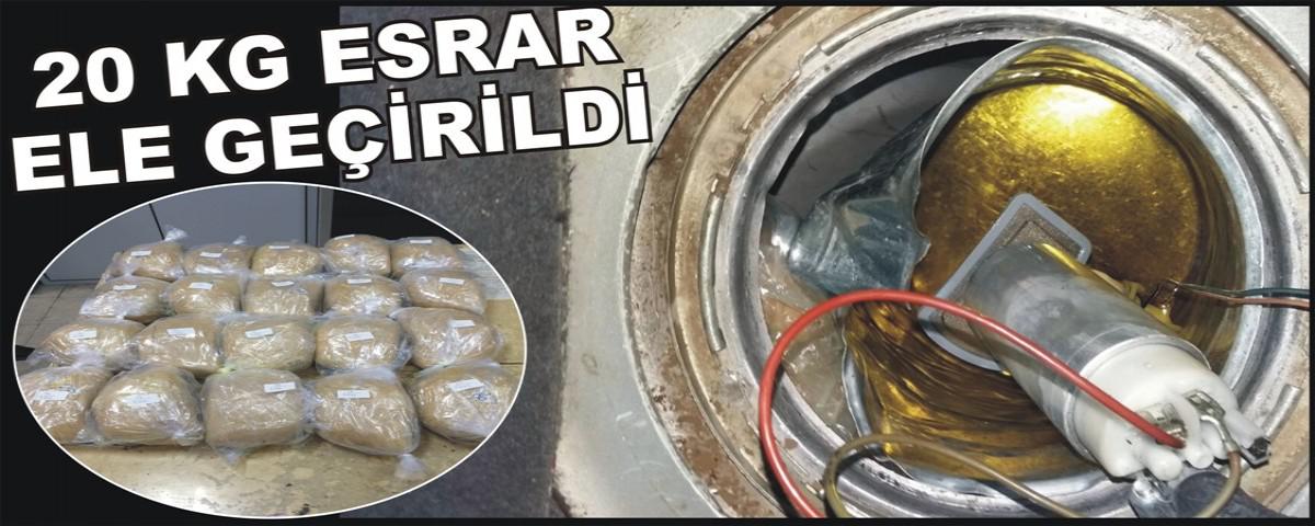 İl Emniyet Müdürlüğü Kaçakçılık ve Organize Suçlarla Mücadele Şube Müdürlüğü ekipleri ile Uyuşturucu ile Mücadele Şube Müdürlüğü ekipleri tarafından eş zamanlı yapılan yol kontrollerinde şüphelenilen 06...Plaka sayılı bir otomobilde yapılan aramalar neticesinde otomobilin benzin deposuna zulalanmış şekilde her biri 1 Kg ağırlığında toplam 20 paket olmak üzere 20 Kg Toz Esrar maddesi bulunarak 06... Plaka sayılı otomobile ve otomobilde bulunan 20 Kg Toz Esrar maddesine soruşturma kapsamında el konulmuş, araçta bulunan İ.A ve B.Ü isimli iki şahıs yakalanarak gözaltına alınmış ve Adli Makamlara sevk edilmişlerdir. Kıvanç EKŞİOĞLU
