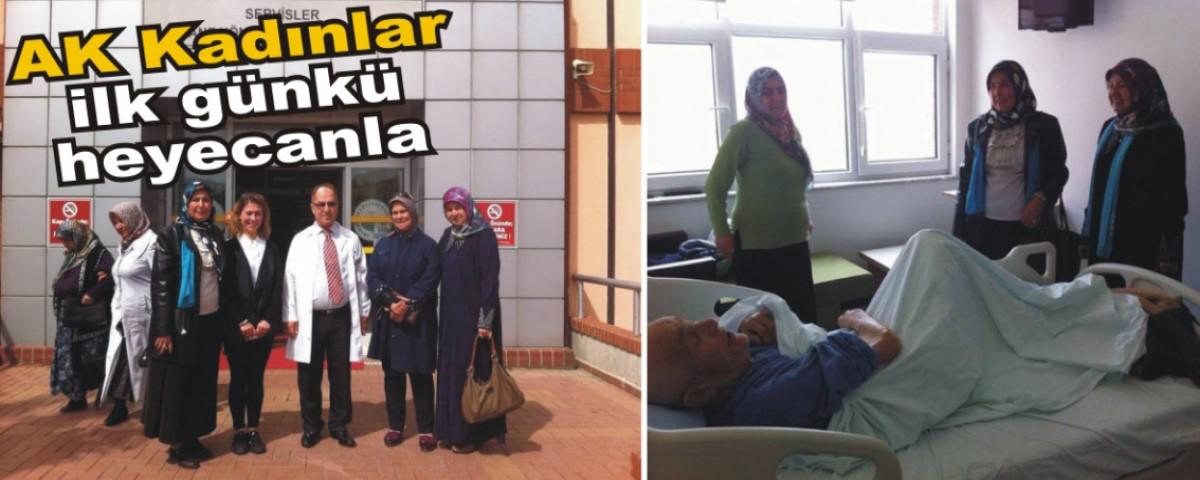 Ziyaret sırasında servislerde tedavi gören hastaları ziyaret ederek onlara geçmiş olsun dileklerinde bulunan Bolu AK Kadınlar, hasta yakınları da sohbet ettiler.