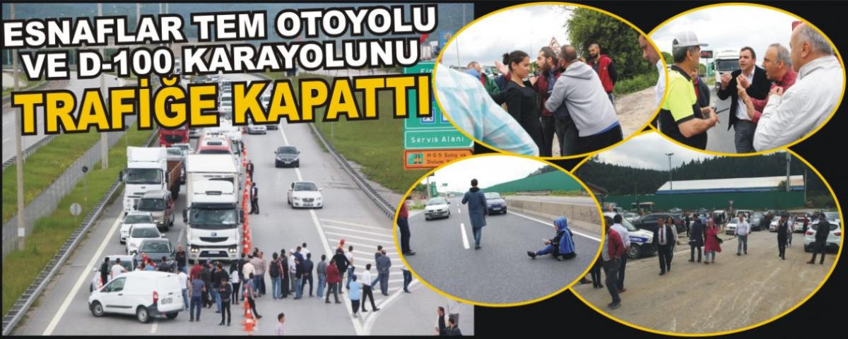 Edinilen bilgiye göre, Bolu’da TEM otoyolu yanında faaliyet gösteren Highway Alışveriş Merkezi’nin D-100 karayolundan girişi çukur kazılarak kapatıldı. TEM otoyolunda da devam eden çalışmalar sebebiyle müşteriler alışveriş merkezine giremedi. Bunun üzerine yaklaşık 100 esnaf, D-100 karayolunun İstanbul istikametini trafiğe kapattı. Bölgeye polis ekipleri sevk edildi. Esnaf ve polisler arasında zaman zaman tartışmalar yaşandı. Esnaf yaklaşık 1 saat süren görüşmenin ardından D-100’ü trafiğe açtı. Yaklaşık 100 kişilik grup, daha sonra TEM otoyolunun iki istikametini de trafiğe kapattı. Polis ekiplerinin grupla yaptıkları görüşmelerin ardından trafik yaklaşık 15 dakika sonra tekrar açıldı. Alışveriş merkezi yönetimi savcılığa suç duyurusunda bulanacaklarını ifade etti.İHA