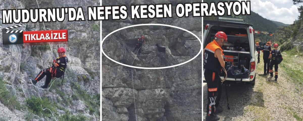 Bolu Afad ekipleri Mudurnu ilçesinde Güveytepe köyünde 4 gündür mahsur kalan 2 keçiden birini kurtardı, diğer Keçi kendi imkanları ile aşağıya inmeyi başardı.