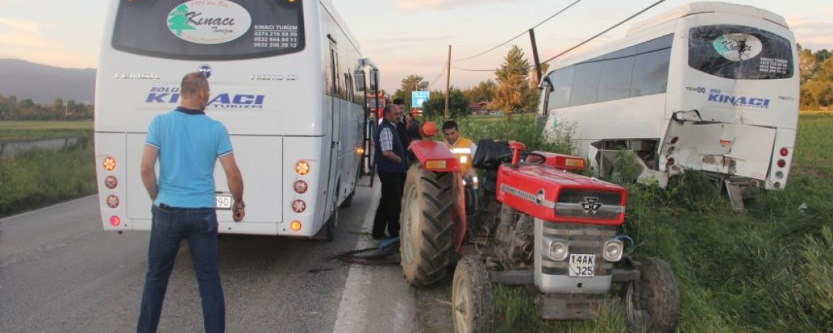 Edinilen bilgiye göre, kaza saat 20.00 sıralarında meydana geldi. Turgut Özdemir yönetimindeki 12 BC 049 plakalı servis midibüsü, Bolu istikametine giderken Doğancı Mahallesi mevkiinde aniden yola çıkan 14 AK 325 plakalı traktöre çarptı. Bu sırada Bolu istikametine giden ve işçileri taşıyan bir başka midibüs, kaza yapan midibüse arkadan çarptı. Çarpmanın etkisiyle elektrik direğine çarpan midibüs tarlaya girdi. Çoğunluğu kadın olan işçiler gözyaşlarına boğulurken, kazada 30 kişi yaralandı. Bazı yaralılar midibüsten 112 sağlık ve itfaiye ekipleri tarafından çıkartıldı. Birbirlerine sarılarak ağlayan kadın işçileri olay yerine gelen yakınları teselli etti. Yaralılar, İzzet Baysal Devlet Hastanesi Köroğlu Ünitesi, İzzet Baysal Tıp Fakültesi ile Çağsu Hastanesi'ne kaldırılarak tedavi altına alındı.