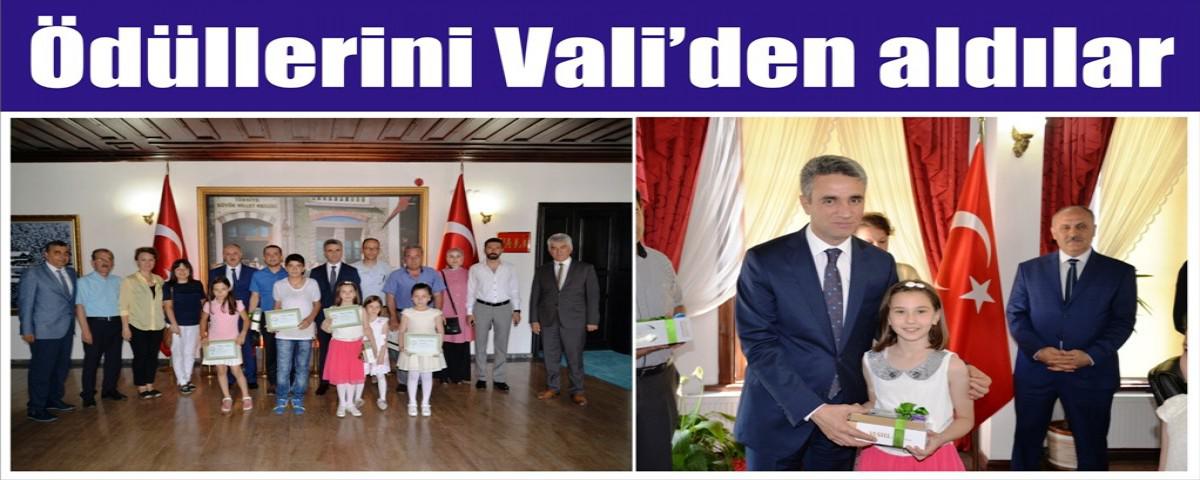 Yarışmada birinci olan Özel Gürtan İlköğretim Okulunda İdil Hırca, ikinci olan Özel Bilim Okulundan Fatma Ebrar Özay ve üçüncü olan Gazipaşa İlköğretim Okulundan Aylin Söbütay ödüllerini Bolu Valisi Aydın Baruş'tan aldı.
