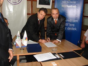 İmza töreninde bir konuşma yapan Yapı Kredi Marmara Bölge Müdürü Aydın Akkan, Yapı Kredi?nin genişleyen şube ağıyla, VIP müşteri olarak kabul ettikleri KOBİ müşterilerine mümkün olan her il ve ilçede ayrıcalıklı ticari ve bireysel bankacılık hizmetleri sunmayı amaçladıklarını dile getirerek,?Bildiğiniz gibi, 2008 büyüme hedefimize paralel olarak, Türkiye genelinde açtığımız şubelere her gün bir yenisini ekliyoruz. Ağustos sonu itibariyle, Türkiye genelindeki il ve ilçelerde toplam 826 şube sayısına ulaştık. 2008 yılında ise toplam 160 yeni şube açarak ağımızı genişletiyor olacağız. Şube açtığımız il ve ilçelerdeki sanayi ve ticaret odalarıyla anlaşmalar yaparak, söz konusu il ve ilçelerin büyüyen ekonomisine ve KOBİ?lerimizin gelişmesine katkıda bulunmak istiyoruz? dedi. Anadolu?nun farklı noktalarında KOBİ?lere yönelik bilgilendirme toplantıları düzenlediklerini de belirten Akkan, Yapı Kredi?nin, hibe fonları, Basel II ve uluslararası ticaret gibi kritik konuları içeren bilgilendirme toplantılarıyla 2008 yılında da Anadolu?nun farklı noktalarında KOBİ?lerle bir araya gelerek desteğini sürdüreceğini ifade etti.