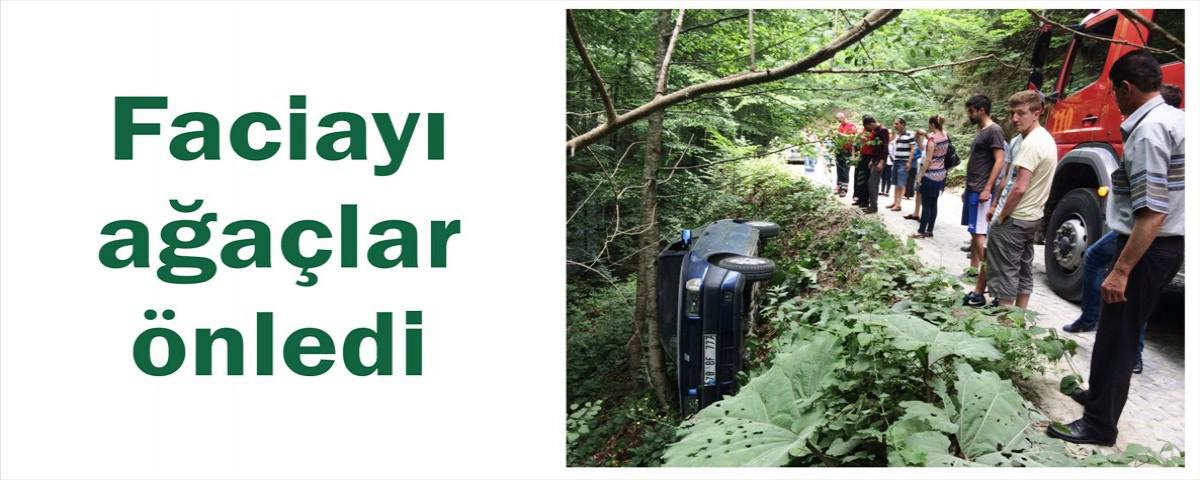 Dere kenarına bulunan ağaçlar sayesinde takla atmaktan son anda kurtulan ve yan yatan otomobilin içindeki 4 kişi imkanlarıyla dışarı çıkarak güvenlik güçlerinden ve itfaiyeden yardım istedi.