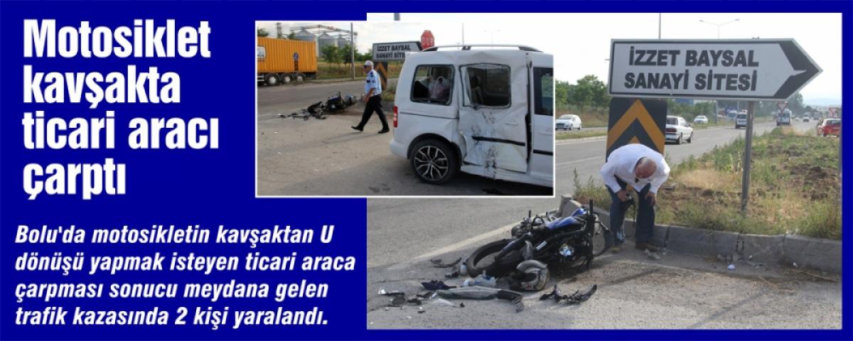 Edinilen bilgiye göre kaza, dün saat 17.45’te D-100 karayolu üzerinde bulunan İzzet Baysal Sanayi Sitesi Kavşağı’nda meydana geldi. Bolu istikametine giden Levent Tabak (20) yönetimindeki 14 GE 377 plakalı motosiklet, kavşaktan U dönüşü yaparak Bolu istikametine geri dönmek isteyen Ali Doğan yönetimindeki 01 DCB 14 plakalı ticari aracın arka kapısına hızla çarptı. Ticari araçta bulunan sürücü ve yanında bulunan kadın büyük şok yaşarken, motosiklet sürücüsü Levent Tabak 112 sağlık ekipleri tarafından İzzet Baysal Devlet Hastanesi Köroğlu Ünitesi’nde tedavi altına alınırken, sağlık durumunun ciddiyetini koruduğu ifade edildi. Kazada ticari araçta bulunan bir kadın da şok geçirerek hastaneye götürüldü. Polis kazayla ilgili inceleme başlattı.
