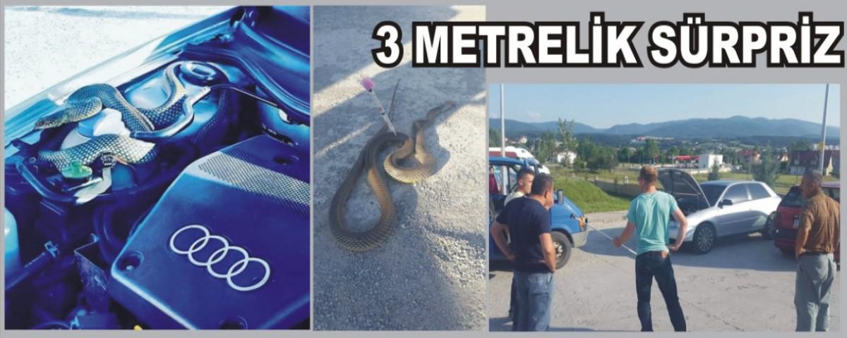 Edinilen bilgiye göre, Mengen Devlet Hastanesi’nde güvenlik görevlisi olarak çalışan Tahan Taylan Eraslan, bahçede bulunan otomobilinin kaputunu açarak motorunun yağını değiştirmek istedi. Eraslan, gördüğü manzara karşısında şok oldu. Motor kısmında yaklaşık 3 metre yılını gören sürücü korku içinde aracından uzaklaştı. Mesai arkadaşlarıyla birlikte ellerine aldıkları sopayla 3 metre uzunluğundaki yılanı aracın motor kısmından çıkartmak isteyen Tahan Taylan Eraslan, başarılı olamayınca olay yerine Mengen Belediyesi İtfaiye Müdürlüğü’ne bağlı ekipler çağrıldı. İtfaiye ekipleri, motor kısmında bulunan yılanı uyuşturucu iğneyle sakinleştirdikten sonra çıkarttılar. Yılan daha sonra doğaya salındı.