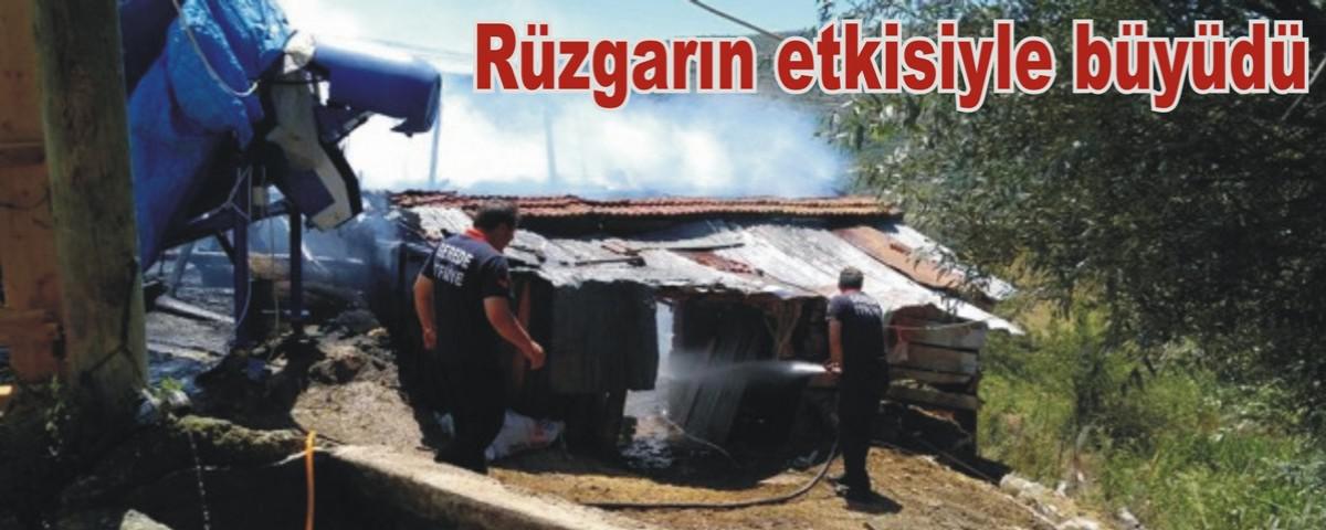 Gerede’ye bağlı Karacadağ Köyü’nde bir evde çıkan yangın, rüzgarın da etkisi ile çevresindeki ahır ve samanlığa sıçradı. Yangında Yücel Emür’e ait ahır ve samanlık kullanılamaz hale geldi.