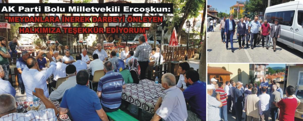 Ercoşkun, Gerede, Mengen, Yeniçağa, Dörtdivan, Mudurnu, Göynük, Seben ve Kıbrıscık ilçelerine yaptığı ziyaretlerinde, Fetullahçı Terör Örgütü’nün (FETÖ) 15 Temmuz darbe girişimi sonrası, meydanlara inen milli irade ve vatan sevdalılarıyla bir araya geldi.
