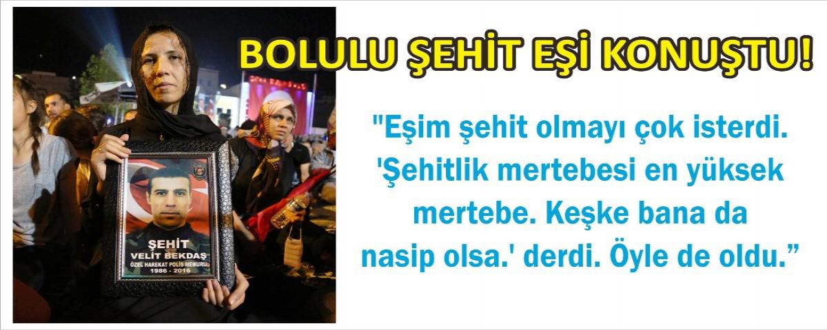 Şehit polis memurunun Bolulu eşi Meryem Bekdaş'ın Beşkavaklar Mahallesi’ndeki baba evinin önünde bir araya gelen Bolulular, "Demokrasi Meydanı" olarak adlandırılan Belediye meydanına kadar yürüdü.
