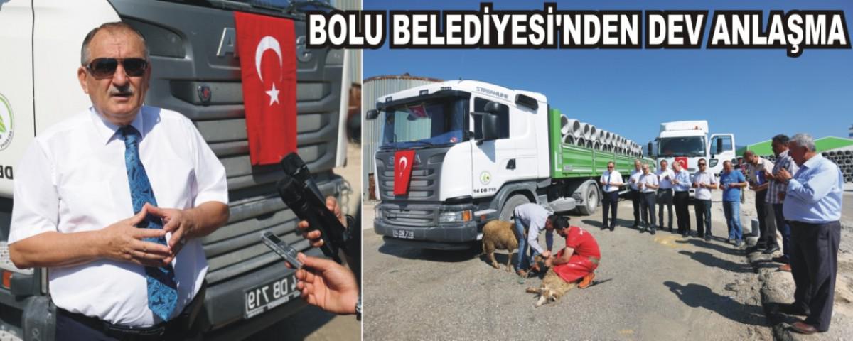 Anlaşma kapsamında büz yüklü 2 TIR Aşağısoku Mahallesi’ndeki şantiye alanından kurban kesilerek dualarla yola çıktı. Bolu Belediye Başkanı Alaaddin Yılmaz, beraberindeki Boluspor Başkanı ve Belediye Meclis Üyesi Necip Çarıkçı ile Belediye Meclis Üyeleri Kazım Konak, Haluk İnceler, Tahsin Akduman, Erdem Yılmaz’la birlikte şantiyeye gelerek, ilk sevkiyatın yapıldığı önemli ana tanık oldu.