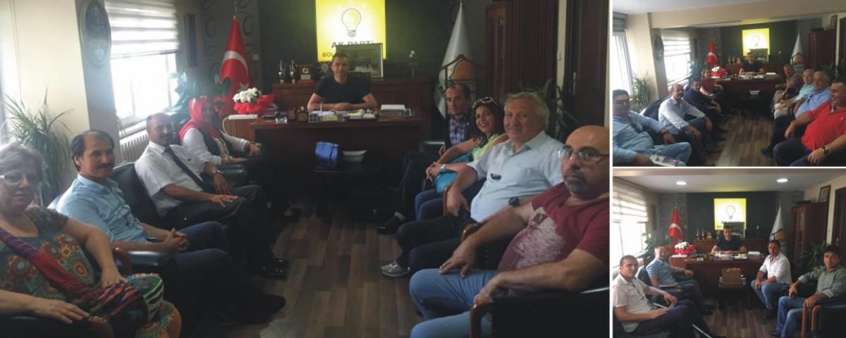 Bu kapsamda son olarak; Şehit Yakınları ve Terör Gazileri Derneği Başkan'ı Ömer Erol Akbaş ve Yönetim Kurulu Üyeleri, Türkiye Kamu-Sen İl Başkan'ı Hüsnü Yaman ve bağlı iş Kolları Başkanları, Türkiye Sakatlar Derneği Bolu Şube Başkanı Satılmış Akman ve Yönetim Kurulu Üyelerinden oluşan heyetler ayrı ayrı AK Parti İl Başkanı Nurettin Doğanay'a geçmiş olsun ziyaretinde bulundular.