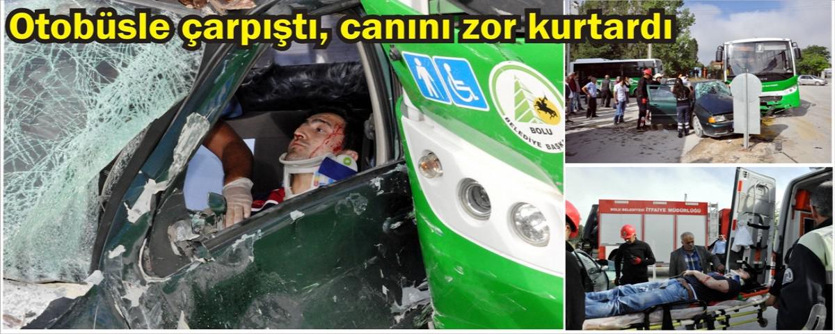 Alınan bilgiye göre, Hürriyet Caddesi'nde seyreden Turgut Yıldız kontrolündeki 14 FJ 619 plakalı özel halk otobüsü, Muhammet Uslucu'nun kullandığı 41 YF 278 plakalı otomobille Turgut Özal Bulvarı kavşağında çarpıştı.