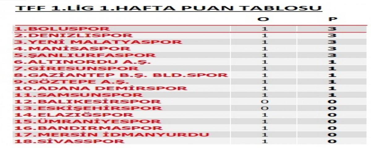 2016-2017 sezonunun ilk hafta maçları oynanmaya devam ediyor. Ligde 6 karşılaşma oynanırken, Boluspor aldığı farklı galibiyet ile liderlik koltuğuna oturdu. Son yıllarda hedefini sürekli süper lig olarak belirleyen ekibimiz liderlik koltuğuna ilk haftada oturunca, kırmızı beyazlı taraftarlar yıllardır görmediği tabloyu sosyal paylaşım sitelerinden paylaşmayı ihmal etmedi.