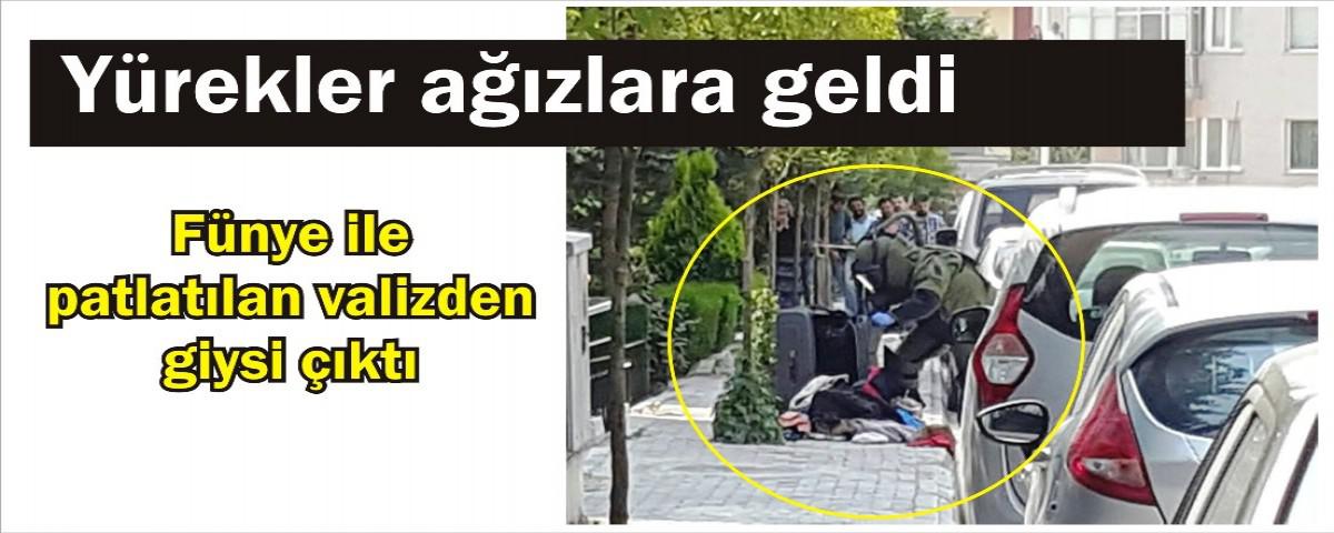 Bölgede alınan güvenlik önlemlerinin ardından İl Emniyet Müdürlüğü bomba imha ekibi şüpheli paketi fünye ile patlattı. Patlatılan valizin içinden giysi çıktı. AA