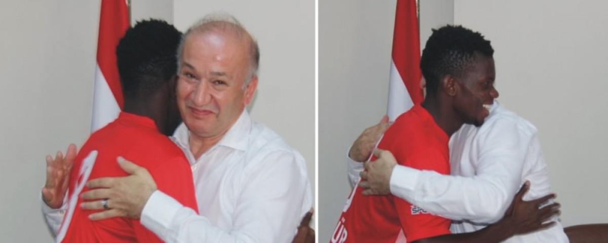 İmza töreni sonrası oyuncuları tek tek tebrik eden Çarıkcı'yı Diarra'nın kucaklaması objektiflere böyle yansıdı. İkili arasındaki samimiyet dikkat çekerken siyahi oyuncunun başkana "Necip baba" diye hitap ettiği öğrenildi. Barış Güzeltürk