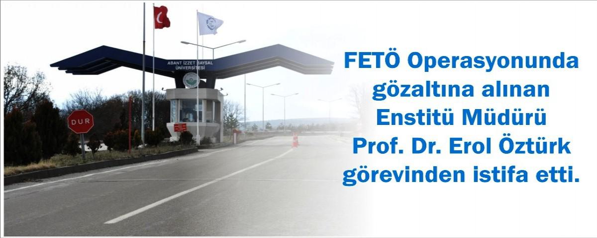 Fethullahçı Terör Örgütü’ne (FETÖ) yönelik düzenlenen operasyonlar kapsamında şüpheli olarak gözaltına alınan ve mahkeme tarafından adli kontrol şartıyla serbest bırakılan AİBÜ Enstitü Müdürü Prof. Dr. Erol Öztürk bir süre önce görevine geri dönmüştü.