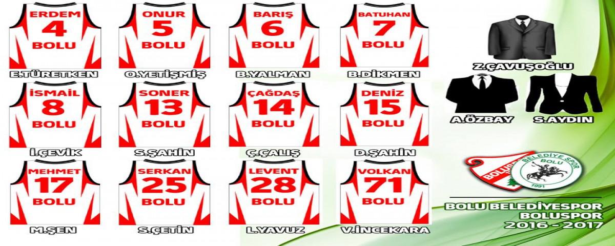 Boluspor Bolu Belediyespor Basketbol Kulübü’nden alınan bilgiye göre antrenörlüğünü Zafer Çavuşoğlu’nun yapacağı temsilcimizin yeni sezon kadrosunda şu isimler yer alıyor: Erdem Üretken, Onur Yetişmiş, Barış Yalman, Batuhan Dikmen, Soner Şahin, İsmail Çevik, Çağdaş Çalış, Deniz Şahin, Mehmet Şen, Serkan Çetin, Levent Yavuz ve Volkan İncekara.