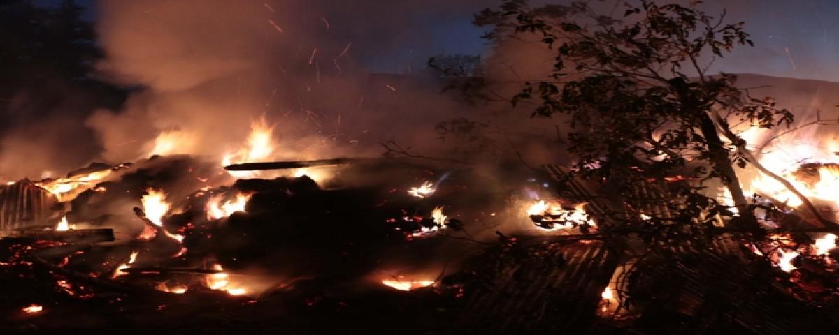 Özcan ve Bayram'a ait samanlıklar tamamen kullanılamaz hale gelirken samanlıkta bulunan 2 bin saman balyası yandı.