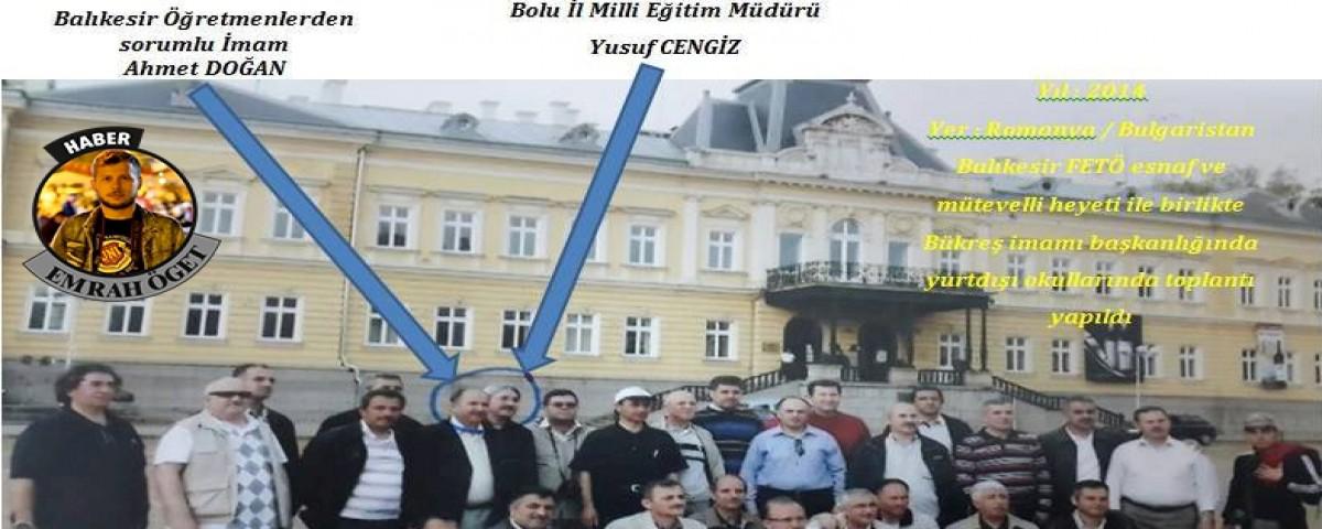 Bolu İl Milli Eğitim Müdürü Yusuf Cengiz’e konu ile ilgili olarak sorular yönelten genç Başkan Karagöz, “Öncelikle çalışmaları ile değil Atatürk düşmanlığı ve 10. Yıl Marşımızı yasaklaması ile gündeme gelen Bolu İl Milli Eğitim Müdürü Yusuf Cengiz'e birkaç sorum olacak. Bu fotoğraflardaki şahıslarla, yani Balıkesir Esnaf ve Milletvekili heyeti ile birlikte FETÖ Bükreş İmamı başkanlığında, 2014 yılında FETÖ terör örgütü yurt dışı okulları gezisi ve toplantıları yaptınız mı? (Romanya ve Bulgaristan ziyaretindeki fotoğraf)” diye sordu.