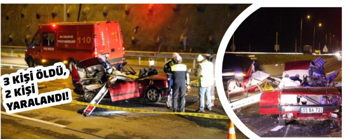 Kaza, saat 01.00 sıralarında TEM'in İstanbul yönünde Bolu Dağı Tüneli çıkışında meydana geldi. İstanbul yönüne giden 24 yaşındaki Mümin Üzümcüoğlu yönetimindeki 55 BA 731 plakalı otomobil, sürücüsünün kontrolünden çıkarak önde giden 28 yaşındaki Mehmet Taşan yönetimindeki 27 NJ 125 plakalı TIR'a arkadan çarptı. Savrularak TIR'ın dorsesi ile yol kenarındaki bariyer arasında sıkışan otomobil hurdaya döndü. TIR dorsesindeki tamponun üst tarafını giyotin gibi kestiği otomobilin sürücüsü Mümin Üzümcüoğlu ile birlikte yanında bulunan 60 yaşındaki Cüneyt Hüsük ve ismi öğrenilemeyen bir kişi kaza yerinde öldü. Otomobilde bulunan 24 yaşındaki Mecit Işık ile 31 yaşındaki Gökhan Zalım ise yaralandı. Araçtan çıkarılan yaralılardan Gökhan Zalım Düzce Atatürk Devlet Hastanesi, Mecit Işık ise Abant İzzet Baysal Üniversitesi Tıp Fakültesi Hastanesi'ne kaldırıldı.