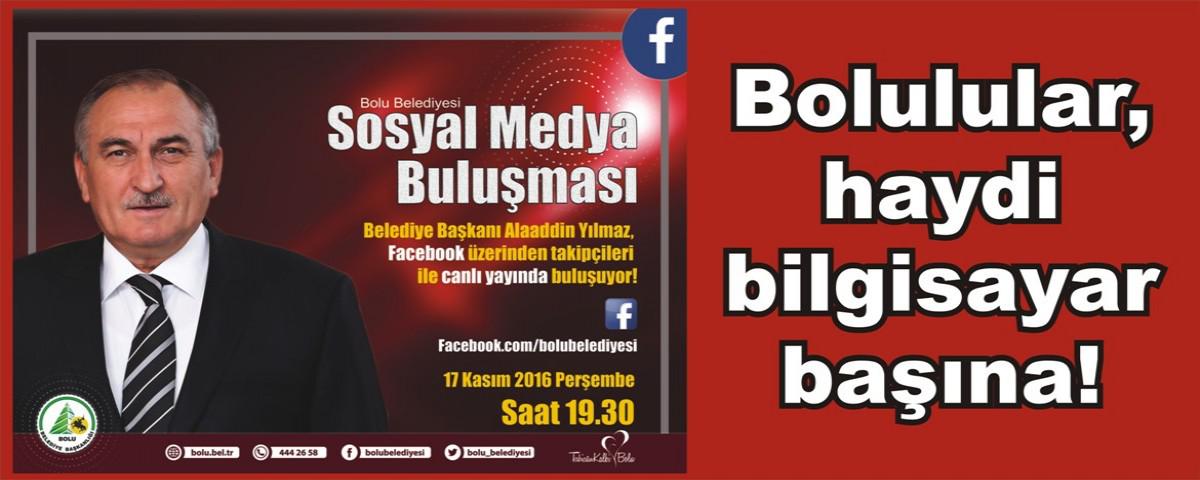 Bolu Belediye Başkanı Alaaddin Yılmaz, 17 Kasım 2016 Perşembe günü saat 19.00’da bilgisayar başına geçerek, sosyal paylaşım sitesi Facebook üzerinden gerçekleşecek canlı yayında takipçilerinin sorularını yanıtlayacak.