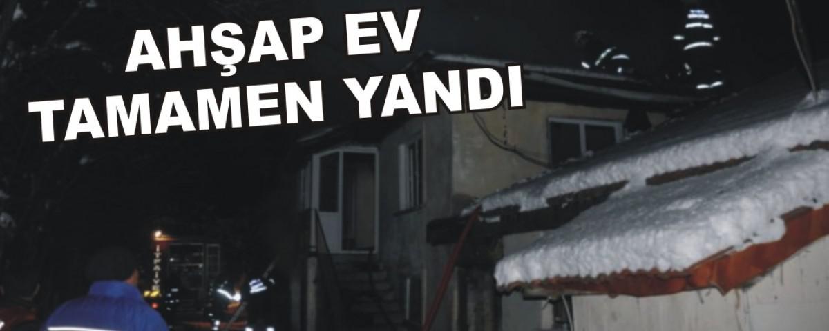 Yangının meydana geldiği ahşap ev tamamen yanarak kullanılamaz hale geldi.