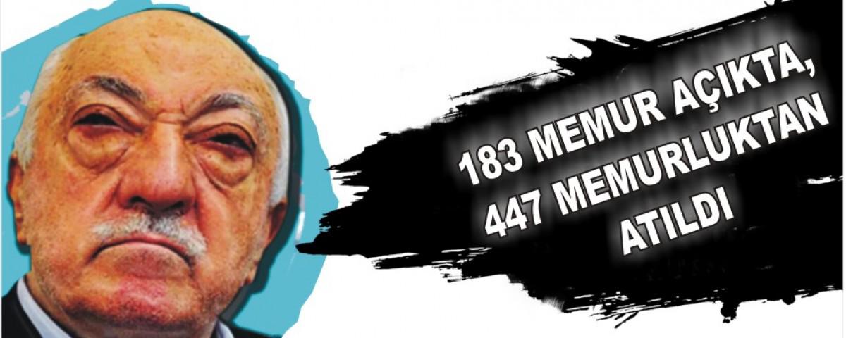 Kanlı darbe girişiminin üzerinden 139 gün geçti. Devletin tüm kurumlarına bir virüs gibi giren, FETÖ/PDY Terör Örgütü’ne üyelerine yönelik başlatılan çalışmalar ise aralıksız bir şekilde sürüyor. Çalışmalar kapsamında OHAL Bürosu tarafından FETÖ/PDY üyesi olduğundan şüphelenilen 183 memur açığa alınırken, yayınlanan Kanun Hükmünde Kararnamelerle 447 kişi ise devlet memurluğundan atıldı.