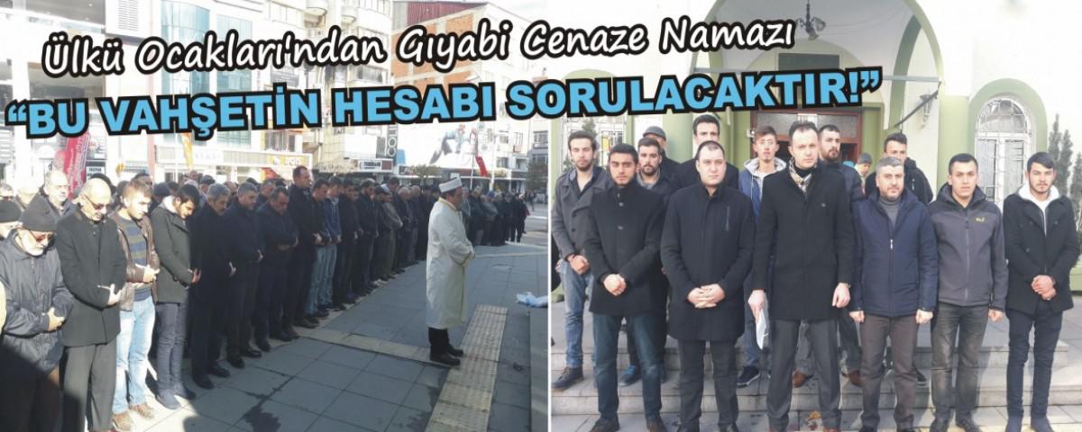 Ülkü Ocaklarının geleneksel hale getirdiği ve her Cuma namazı sonrası ‘Bir Fatiha’da Sen Oku’ organizasyonu kapsamında bu hafta Fatiha’lar Halep şehitlerine giderken, aynı zamanda gıyabi cenaze namazı kılındı ve basın açıklamasında bulunuldu.