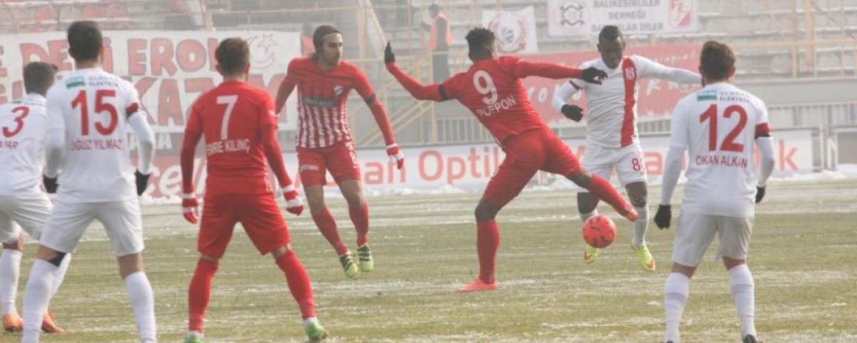Maçın 44’üncü dakikasında Boluspor gole çok yaklaştı. Poepon, ceza sahasına girer girmez çok sert vurdu, kaleci topu kornere çeldi. İlk yarının sonuna 1 dakika süre ilave edildi. Karşılaşmanın ilk yarısı Balıkesirspor2un 1-0 üstünlüğü ile sona erdi.