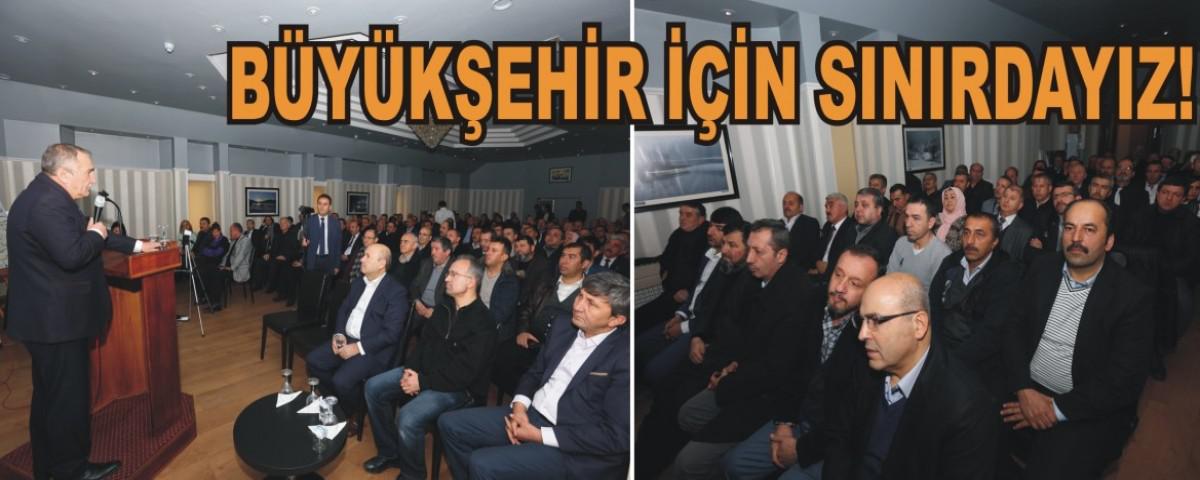 Belediye Başkanı Alaaddin Yılmaz, toplantıda yapığı konuşmada, 13 yıldır şehirde birçok önemli çalışmaya imza attıklarını ve bunları yaparken de hiçbir siyasi görüş ayrılığı yapmaksızın her kesimin görüşlerini dikkate aldıklarını belirtti. "Halk yapılanın doğru olduğuna inanırsa siyasi düşünce gözetmeksizin size sahip çıktığını görebilirsiniz. Bunun en güzel örneklerinden biri de Bolu'dur" diyen Yılmaz, Büyükşehir için gerekli nüfus sayısının düşürüleceğine ilişkin haberler çıktığını ve konuyu araştırdıklarını belirterek "30 ilin büyükşehir haline gelmesiyle ilgili bir durum söz konusu. Bunlar içinde nüfus sayısı 300 bin kıstas alındığında 2 tane il tam sınırda. Bolu 291 bin küsür, Kars ise tam emin değilim ancak 281 binlerde sanırım. Bolu nüfusu şuan yaşanan artışla 295 bin civarındadır. Eğer büyükşehirle ilgili bir yasa çıkarsa, biz şuan 4-5 bin civarında bir nüfusla yasadan yararlanamayacağız" dedi.