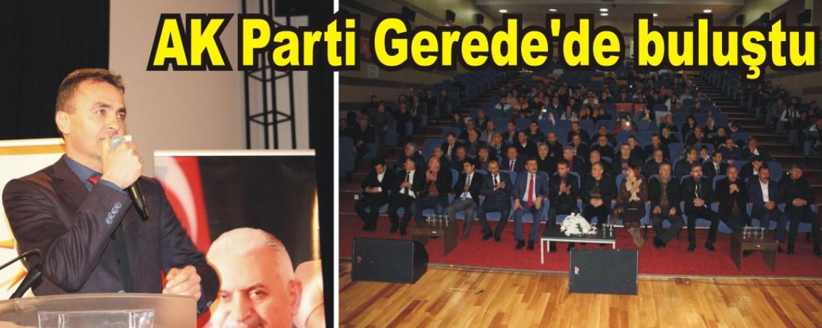 Gerede İl Genel Meclisi Üyesi Yusuf Gökçe ise yaptığı konuşmada, İl Özel İdaresi olarak 2016 yılında yaptıkları çalışmaları anlatırken, 2017 yılında da programa aldıkları Gerede'de yapılacak çalışmalar hakkında bilgi verdi. Gerede AK Gençlik tarafından sahnelenen muhteşem tiyatro gösterisinin ardından Gerede Belediye Başkanı Mustafa Allar kürsüye çıkarak, Danışma Meclisine katılan AK Partililere hitap etti. Göreve geldiği 33 ayın bir muhasebesini yaptığı konuşmasında Allar; "Gerede'de seçim öncesi tespit ederek seçim beyannamemize koyduğumuz başta dericilik sektörünün yarattığı sıkıntılar olmak üzere söz verdiğimiz projelerin hemen hemen çoğunu gerçekleştirdik. Buna rağmen Gerede'miz halen çözüm bekleyen bir çok sorunu, daha modern bir Gerede için atmamız gereken bir çok adım bulunuyor" şeklinde konuştu. Bir aylık çalışmaları hakkında bilgi veren İl gençlik Kolları Başkanı Taha Furkan Sönmezel ise konuşmasında Aralık ayında yaptıkları faaliyetlerden bahsetti. Gençlik Kolları olarak Halep'e yardım tırı göndermek için başlattıkları çalışmanın sonuna geldiklerini belirten Sönmezel, ayrıca geçtiğimiz ay Teşkilat olarak yoğun bir şekilde üye kaydı, Partili ziyaretleri, Üye işyeri ziyaretleri, Vefa Sohbetleri, Yurt Dışı öğrencilerine yönelik çalışma gerçekleştirdiklerini söyledi.