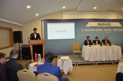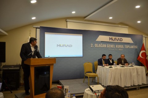 MÜSİAD Bolu Şubesi, olağan kongresini gerçekleştirdi. Kuran’ı Kerim tilaveti ile başlayan genel kurul, Saygı Duruşu ve İstiklal Marşı’nın okunması ile devam etti. Genel Kurul’da, dernek faaliyetleri ile ilgili, katılımcılara, bir slayt gösterisi izletildi. Açılış ve protokol konuşmalarının ardından yapılan seçimde, tek liste ile aday olan Abdullah Abat, MÜSİAD Bolu Şubesinin yeni başkanı seçildi.