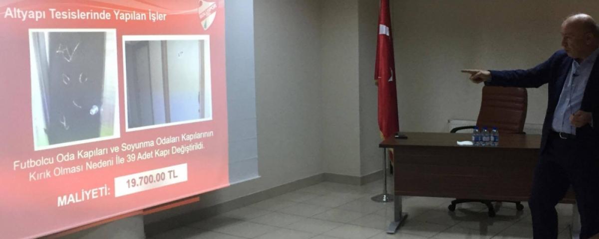 Boluspor tesislerinde düzenlenen toplantıya basın mensupları ve taraftar dernek temsilcileri katıldı. Başkan Çarıkçı, 7,5 aylık sürede neler yapıldığını tek tek anlattı.
