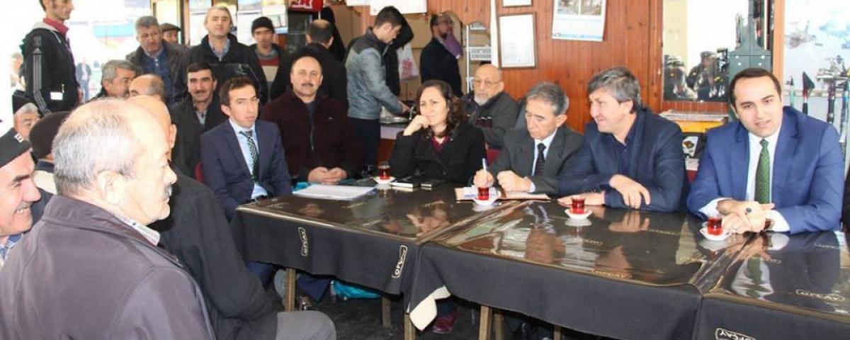 İlçe Kaymakamı Tahir Yılmaz “Sizlerin istek, öneri ve şikayetlerini dinleyeceğimiz, sohbet havasında bir toplantı olsun istedik” dedi. Çiftçi ve muhtarların köy yolları, içme suyu, tarım alanlarının yaban hayvanlarından korunabilmesi konularında talepleri dinlenerek, sorunların ilgili kurumlara iletilerek en kısa sürede neticelendirileceğini belirten Kaymakam Tahir Yılmaz ve Belediye Başkanı Süleyman Özbağ, muhtarlara ve vatandaşlara katılımlarından dolayı teşekkürlerini dile getirdiler. BMA