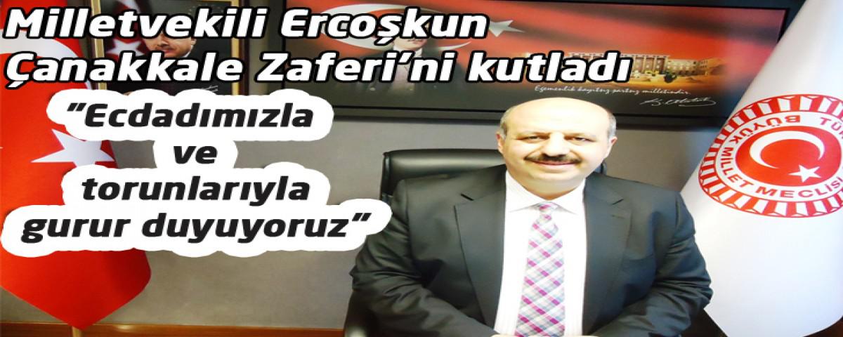 Milletvekili Ercoşkun, açıklamalarını şöyle sürdürdü: "15 Temmuz'da bu aziz ecdadın torunları, bu topraklarda bir kez daha aynı kahramanlığı ortaya koydu ve bu kez içimizdeki hainlere 'Dur' dedi. Ecdadımızın torunları bu üstün vatanseverlik örneği yanı sıra dünyanın en uzun köprüsü unvanını alacak olan Çanakkale 1915 Köprüsü’nü de ülkemize kazandırarak, kıta aşan projeleriyle vatan ve millet sevdasını gözler önüne sermeye devam ediyor. Hani milli şairimiz merhum Mehmet Akif Ersoy diyor ya; “Asım’ın nesli diyordum ya nesilmiş gerçek, İşte çiğnetmedi namusunu çiğnetmeyecek!” Çanakkale Zaferi'nde canlarını feda eden aziz ecdadımızın bugünkü torunlarına da inancımız ve güvenimiz tamdır.