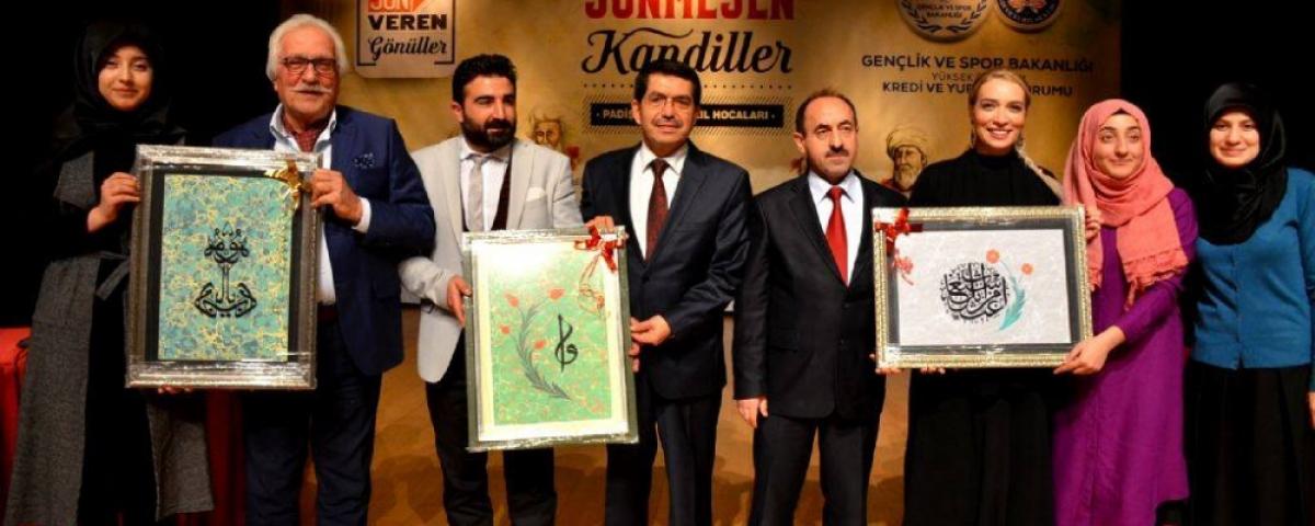 Hükümdarların mürşitlerini anlatan sinevizyon gösterisi ve Ramazan Yumrutepe’nin kum sanatı performansının ardından söyleşi, konuklara hediyelerin takdim edilmesiyle sona erdi.