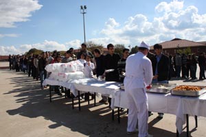 Bolu Tanıtma ve Kalkınma Vakfı?nın üniversiteli öğrencilere yönelik olarak düzenlediği geleneksel ?Hoş Geldiniz? yemeğine AİBÜ?lü öğrenciler yoğun ilgi gösterdi. Her dönemin başında ve yıl sonunda gerçekleştirilen ve geleneksel hale dönüşen yemek organizasyonuna Bolu Vali Yardımcısı Hüseyin Doğan, Bolu Belediye Başkanı Alaaddin Yılmaz, AİBÜ Rektörü Prof. Dr. Atilla Kılıç, akademisyenler ve öğrenciler katıldı. Rektör Atilla Kılıç?ın da yemek dağıtım yaptığı organizasyonda, yaklaşık 5 bin öğrenciye yemek dağıtıldı. Havanın güzel olmasını değerlendiren bazı öğrenciler ise yemeklerini çimenlerin üzerinde yemeyi tercih ettiler.