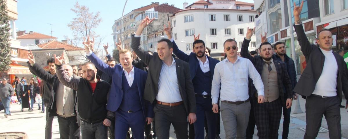 MHP il binası önünde açıklama yapan MHP Bolu İl Başkanı Adem Evcil, ülkü ocaklarının yaptığı protestonun evet yada hayır ile uzaktan yakından ilgisi bulunmadığını ifade ederek, “Vatandaşımız ister evet der ister hayır der. Bizler Milliyetçi Hareket Partisi’nin Genel Başkanı’na hakaret eden, evet diyen vatandaşlarımıza şerefsiz diyen milletvekilini Bolu’da istemiyoruz. İçine CHP kaçmış, içine HDP kaçmış MHP’lileri görmek istiyorsanız bakın meydana. İşte bu şerefsizlere sürekli lidere sosyal medya hesaplarından küfür eden insanlar. Evet diyen vatandaşlarımıza hakaret eden insanlar. CHP’nin kuyruğuna takılmış MHP’lilere bakın, HDP’nin kuyruğuna takılmış MHP’lilere bakın. Buradan herkese sesleniyorum. MHP Genel Başkanı görevinin başındadır. İl başkanı, ocak başkanı görevinin başındadır. Milliyetçi, ülkücü hareket adına Bolu’da konuşacak herkes görevinin başındadır. Herkes haddini bilsin. Milliyetçi Hareket Partisi, Ülkü Ocakları referandumda milletinin yanında evet diyor. Geriye kalan herkesin verdiği karar kendini bağlar” dedi.