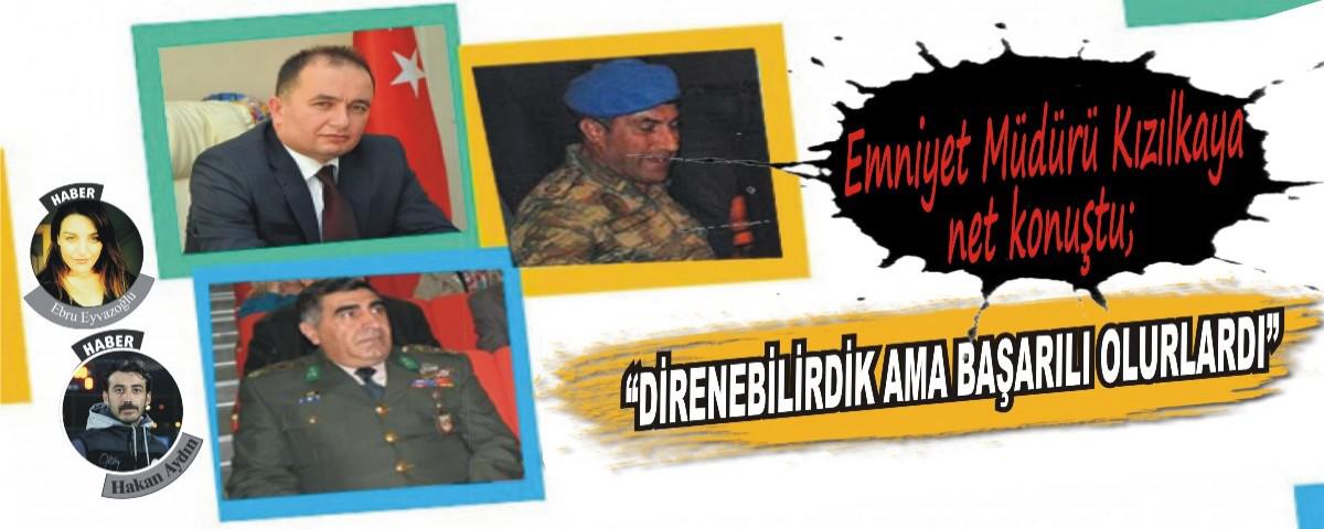 Ardından emniyete geçerek, kendi kuvvetlerimi iki noktada toplamaya çalıştım. Depolardaki silahlarımızı çıkarttırarak, personele dağıttırdım. Bu arada da sivil personellerimi tugaya göndererek hareketlilik olup olmadığını öğrenmeye çalıştım. Buradan bana her hangi bir çıkış olmadığı, sadece birkaç sivil aracın giriş çıkış yaptığı iletildi. Ben bu araçları da istihbarat amaçlı çıkış yaptıklarını düşündüm.